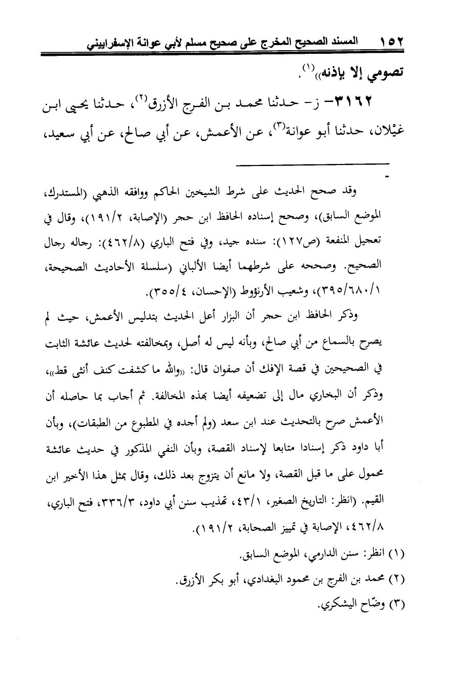 3162 - ز- حدثنا محمد بن الفرج الأزرق (¬1)، حدثنا يحيى ابن غيْلان، حدثنا أبو عوانة (¬2)، عن الأعمش، عن أبي صالح، عن أبي سعيد،