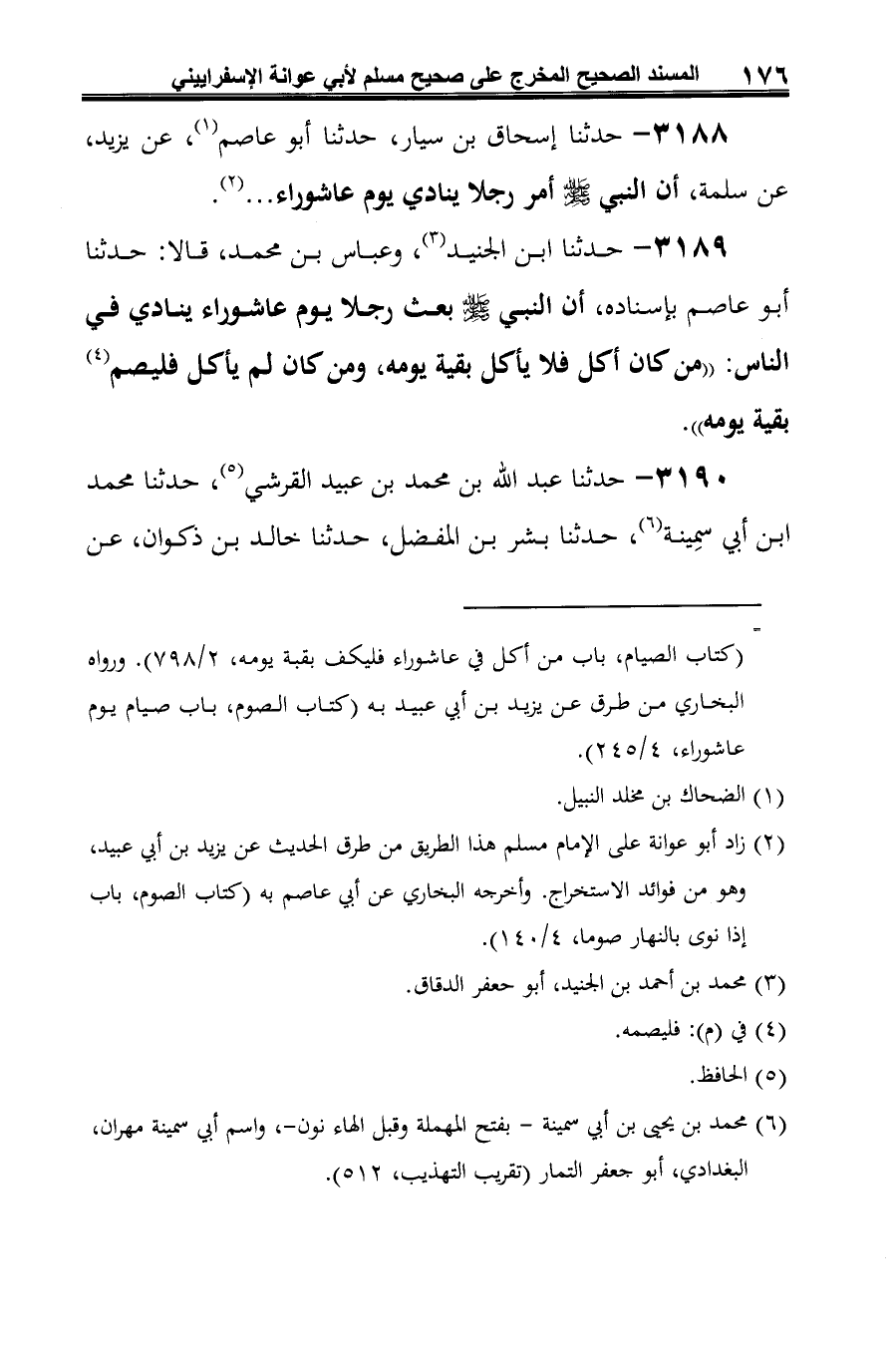 3189 - حدثنا ابن الجنيد (¬1)، وعباس بن محمد، قالا: حدثنا أبو عاصم بإسناده، أن النبي -صلى الله عليه وسلم- بعث رجلا يوم عاشوراء ينادي في الناس: "من كان أكل فلا يأكل بقية يومه، ومن كان لم يأكل فليصم (¬2) بقية يومه".