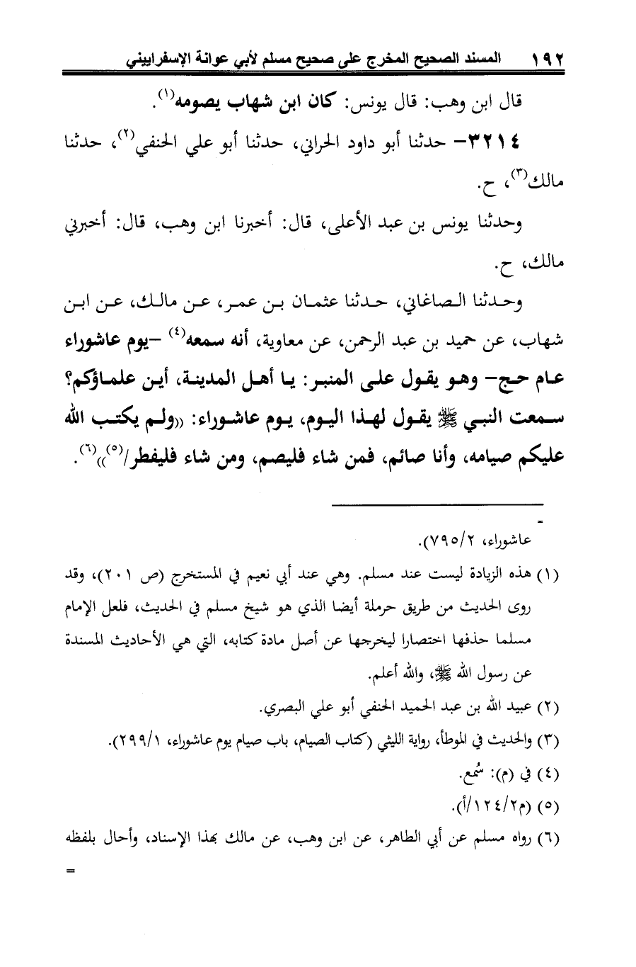 -[193]- = على حديث يونس (الموضع السابق)، وزادت روايته، -كما ساق أبو عوانة لفظ: "عام حج"، فاستفيد منها بيان اللفظ المحال. ورواه البخاري عن القعنبي، عن مالك به (كتاب الصوم، باب صيام يوم عاشوراء، 4/ 244).