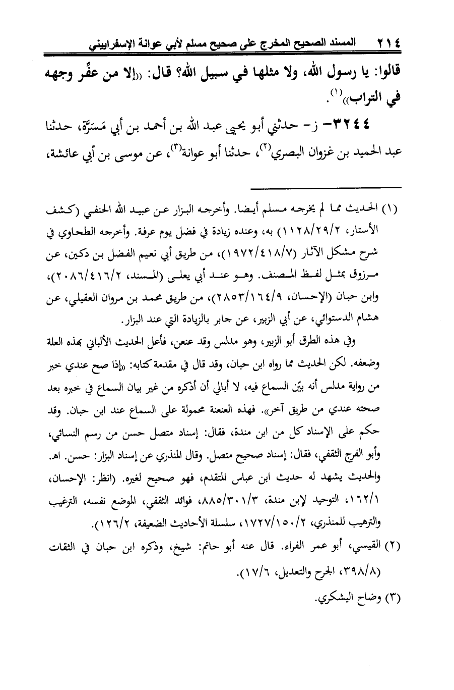 3244 - ز- حدثني أبو يحيى عبد الله بن أحمد بن أبي مَسَرَّة، حدثنا عبد الحميد بن غزوان البصري (¬1)، حدثنا أبو عوانة (¬2)، عن موسى بن أبي عائشة،