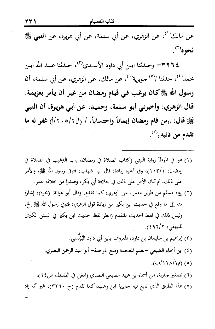 3264 - وحدثنا ابن أبي داود الأسدي (¬1)، حدثنا عبد الله ابن محمد (¬2)، حدثنا (¬3) جويرية (¬4)، عن مالك، عن الزهري، عن أبي سلمة، أن رسول الله -صلى الله عليه وسلم- كان يرغب في قيام رمضان من غير أن يأمر بعزيمة.