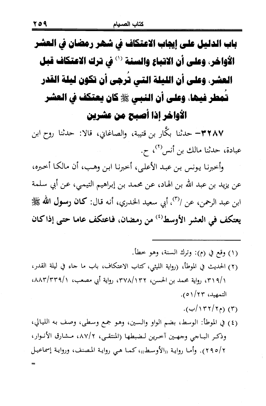 (¬1) الحديث في الموطأ، (رواية الليثي، كتاب الاعتكاف، باب ما جاء في ليلة القدر، 1/ 319، رواية محمد بن الحسن، 132/ 378، رواية أبي مصعب، 1/ 339 / 883، التمهيد، 23/ 51).
