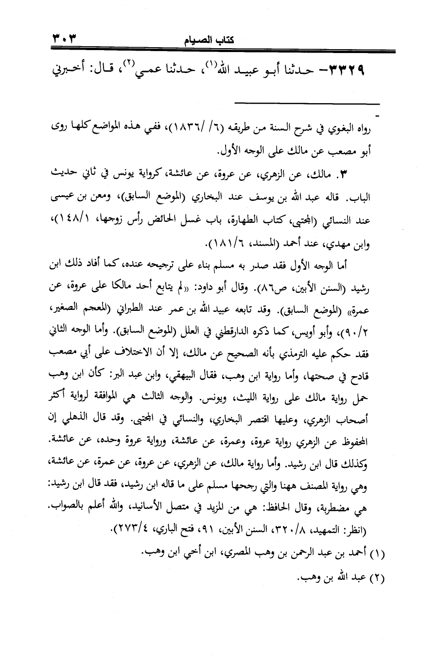(¬4) رواه مسلم عن هارون بن سعيد الأيلي، عن ابن وهب به (كتاب الحيض، باب جواز غسل الحائض رأس زوجها، 1/ 244). وفيه متابعة لأبي عبيد الله، الراوي عن ابن وهب عند أبي عوانة.
