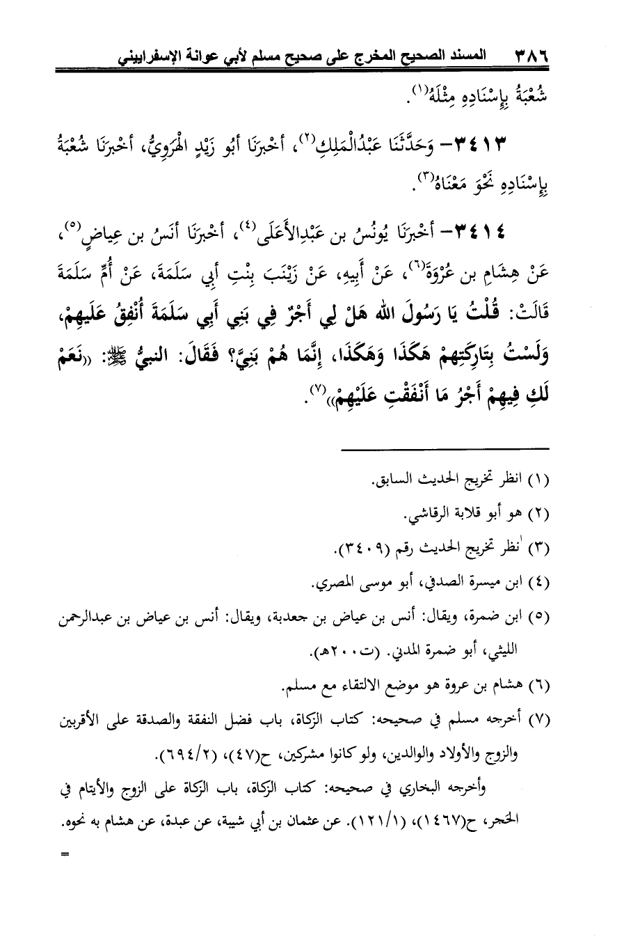 (¬6) أخرجه مسلم في صحيحه: كتاب الزكاة، باب فضل النفقة والصدقة على الأقربين والزوج والأولاد والوالدين، ولو كانوا مشركين، ح (45، 46)، (2/ 694).