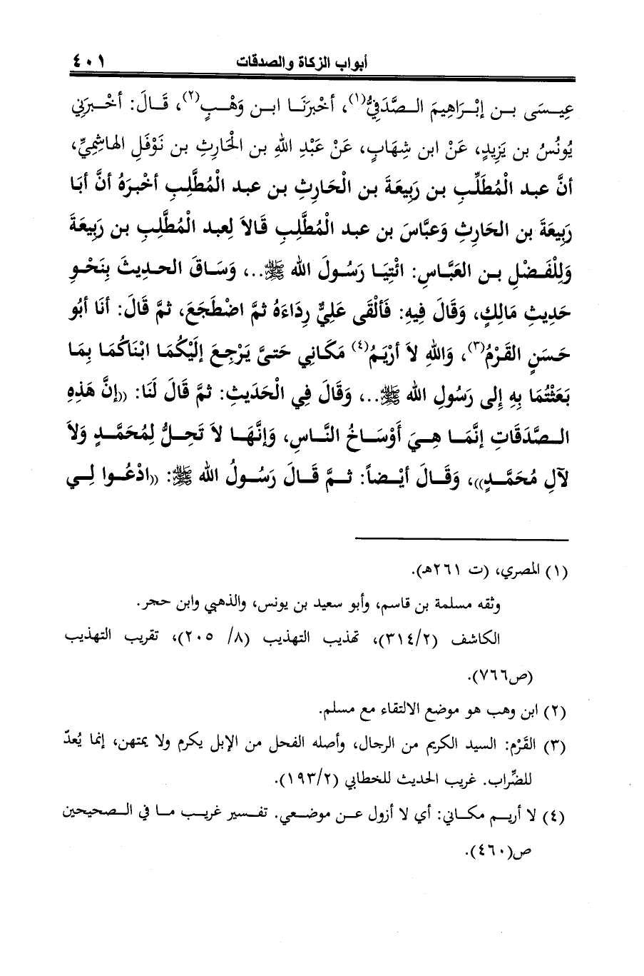 (¬6) أخرجه مسلم في صحيحه: كتاب الزكاة، باب ترك استعمال آل النبيّ على الصدقة ح (167)، (2/ 752).