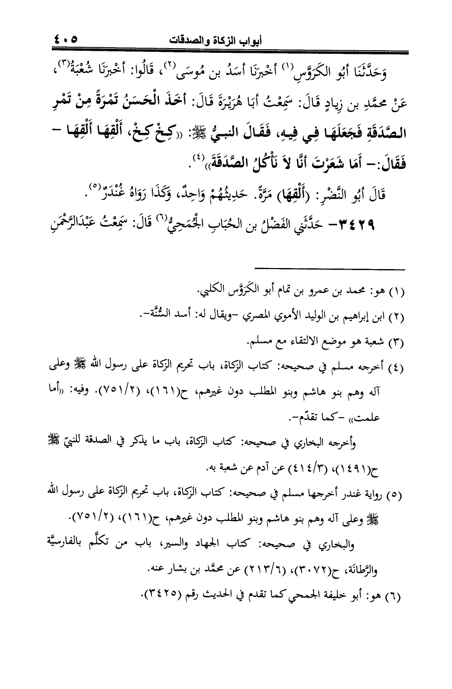 (¬9) أخرجه مسلم في صحيحه: كتاب الزكاة، باب تحريم الزكاة على رسول الله -صلى الله عليه وسلم- وعلى آله وهم بنو هاشم، وبنو عبد المطلب دون غيرهم، ح (161)، (2/ 751).
