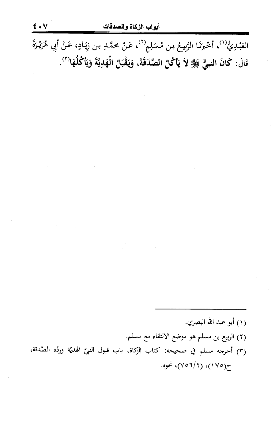 (¬7) أخرجه مسلم في صحيحه: كتاب الزكاة، باب قبول الهدية وردّه الصدقة، ح (175)، (2/ 756).