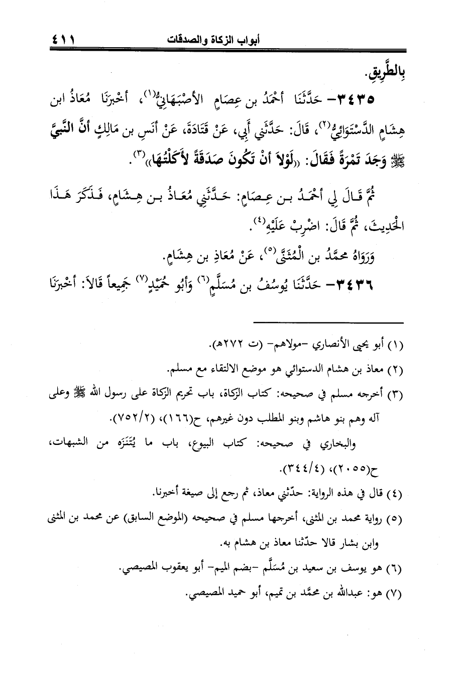 (¬4) أخرجه مسلم في صحيحه: كتاب الزكاة، باب تحريم الزكاة على رسول الله -صلى الله عليه وسلم- وعلى آله وهم بنو هاشم وبنو المطلب دون غيرهم، ح (164)، (2/ 752).