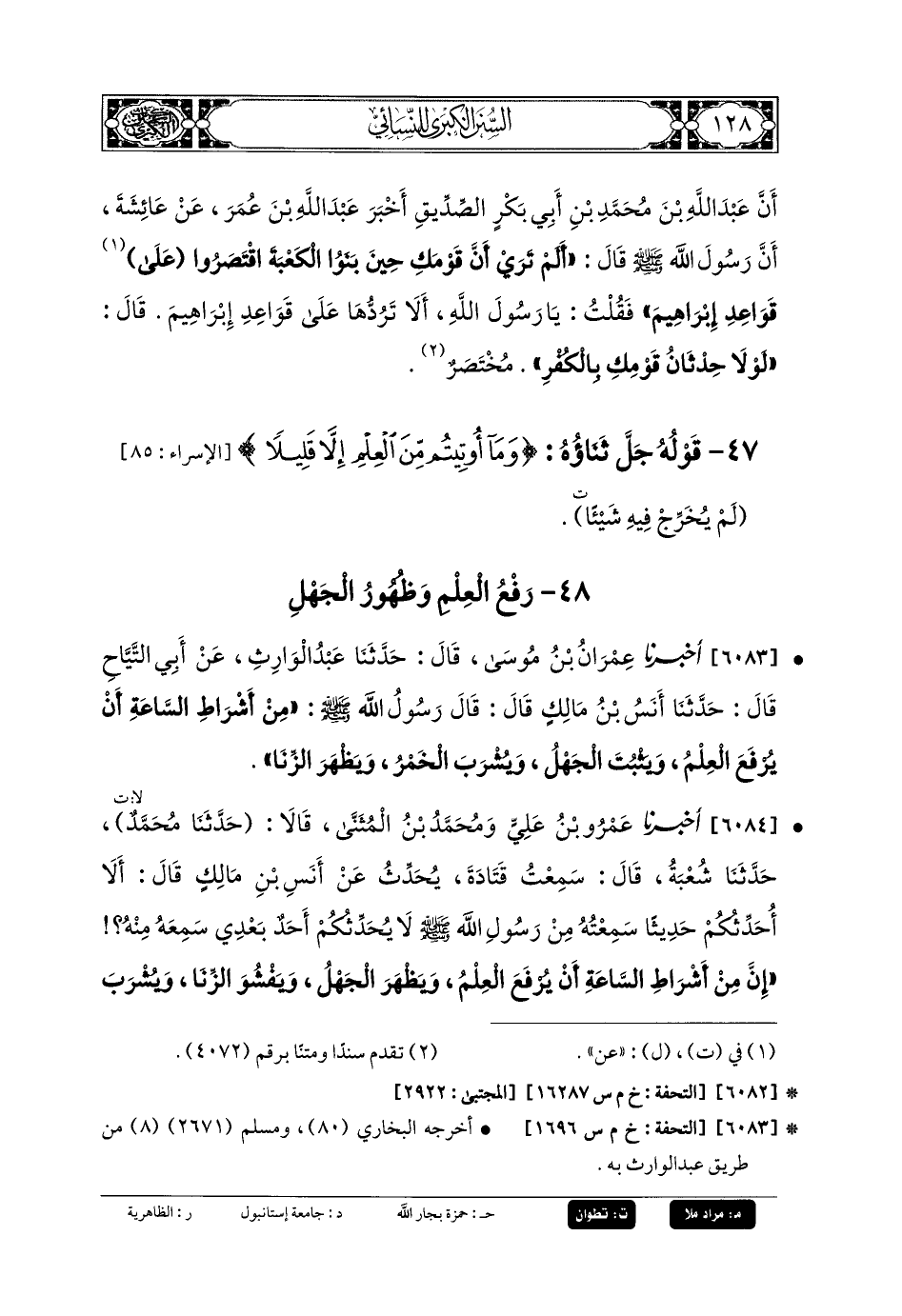 48- رَفْعُ العِلْمِ وَظُهُورُ الجَهْلِ.