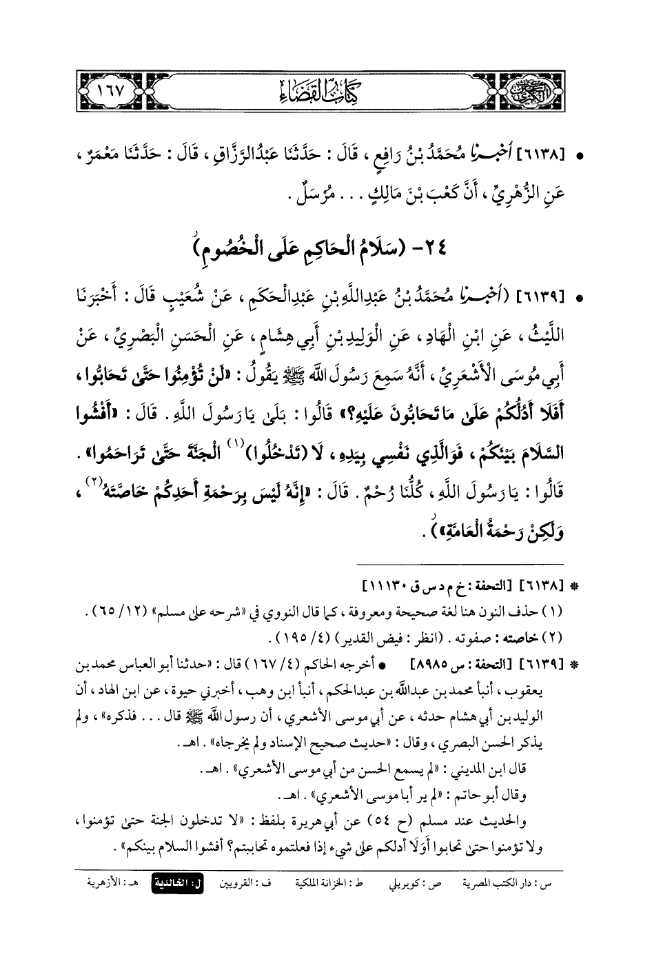 24- سَلامُ الحَاكِمِ عَلَى الخُصُومِ.