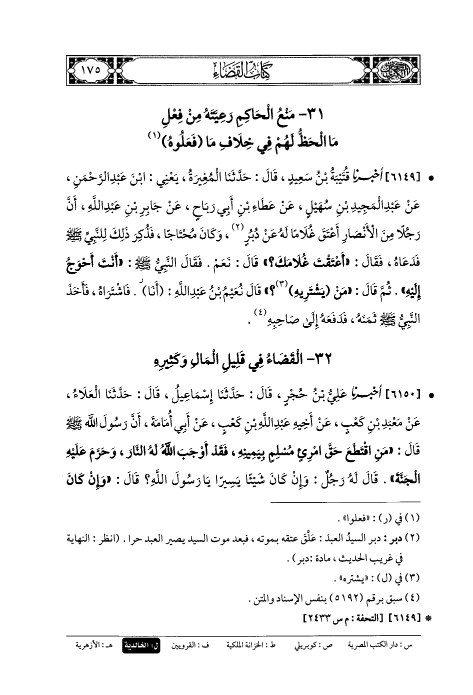 32- القَضَاءُ فِي قَلِيلِ المَالِ وَكَثِيرِهِ.