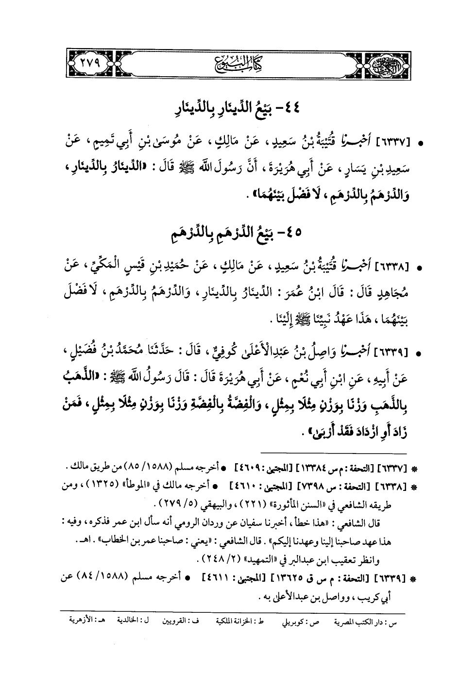 44- بَيْعُ الدِّينَارِ بِالدِّينَارِ.