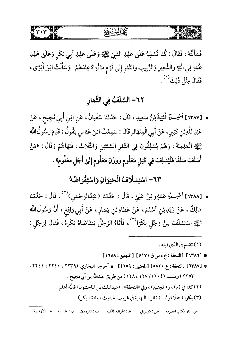 63- اسْتِسْلافُ الحَيَوَانِ وَاسْتِقْرَاضُهُ.
