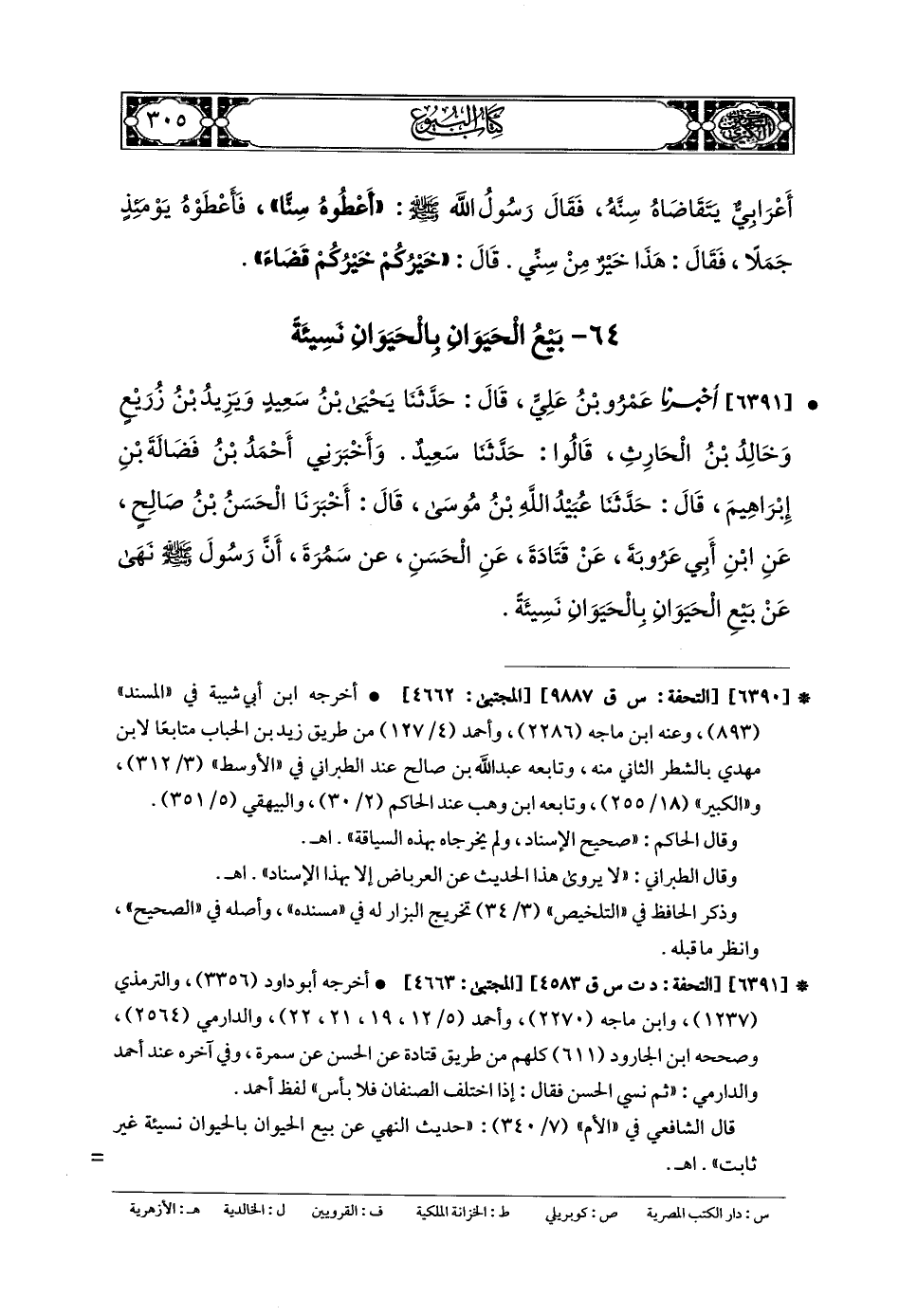 64- بَيْعُ الحَيَوَانِ بِالحَيَوَانِ نَسِيئَةً.