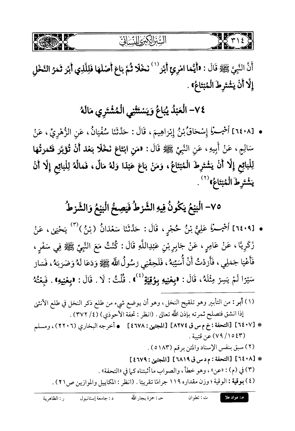 74- العَبدُ يُبَاعُ، وَيَسْتَثْنِي المُشْتَرِي مَالَهُ.