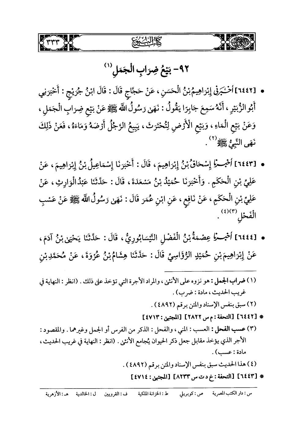 92- بَيْعُ ضِرَابِ الجَمَلِ.