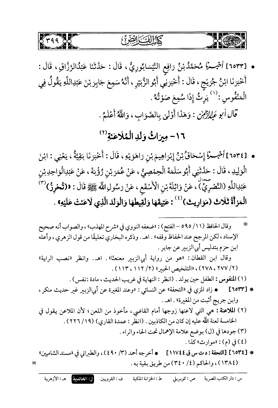 16- مِيرَاثُ وَلَدِ المُلاعَنَةِ.