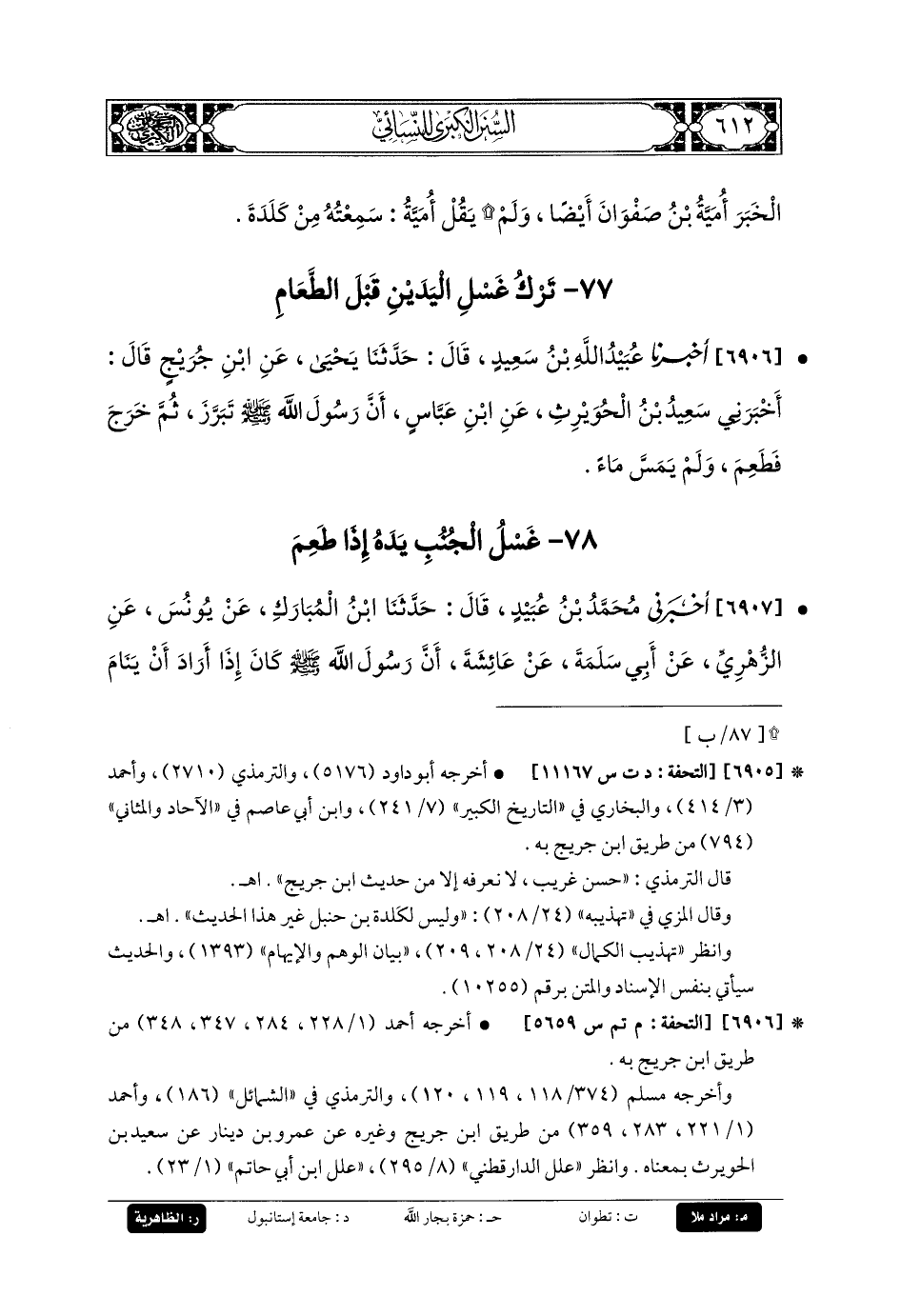 77- تَرْكُ غَسْلِ اليَدَيْنِ قَبْلَ الطَّعَامِ.