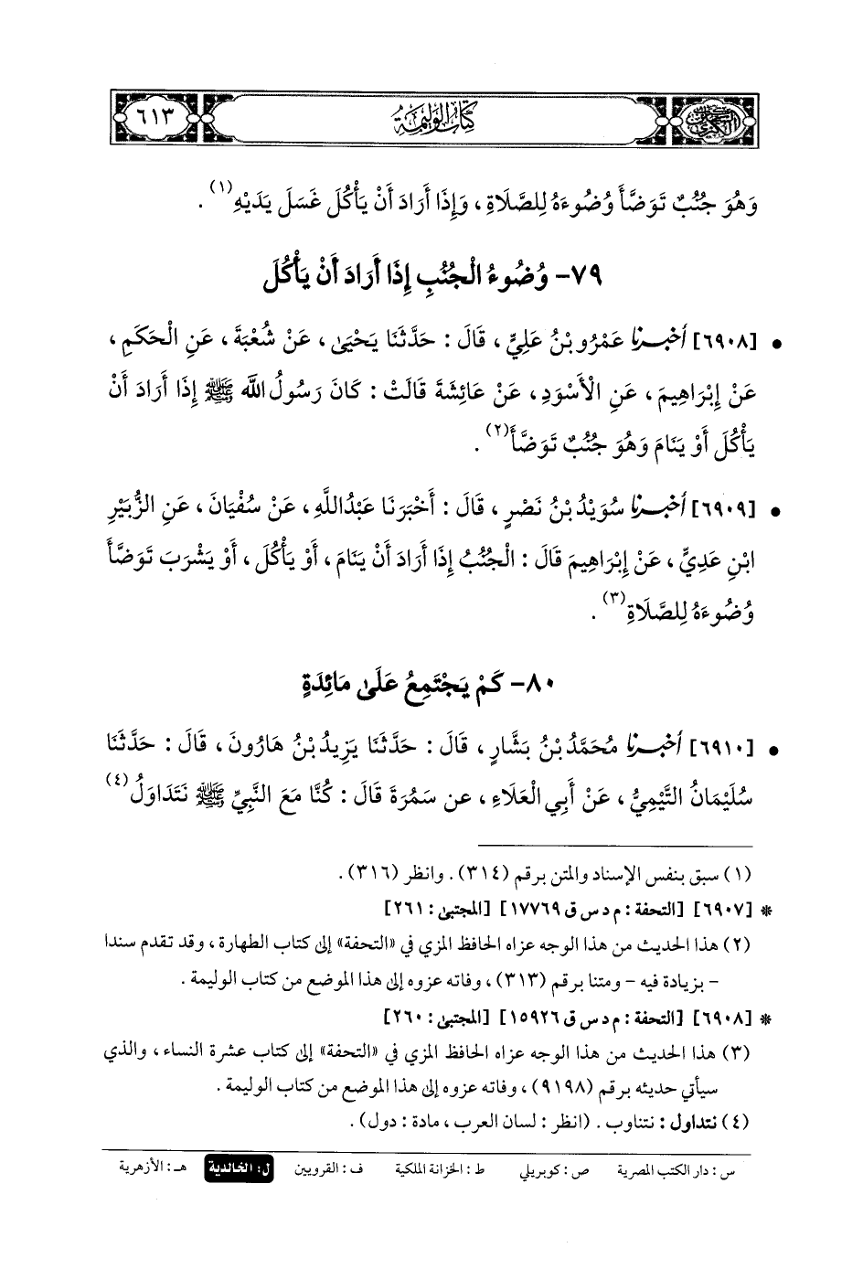 79- وُضُوءِ الجُنُبِ إِذَا أَرَادَ أَنْ يَأْكُلَ.
