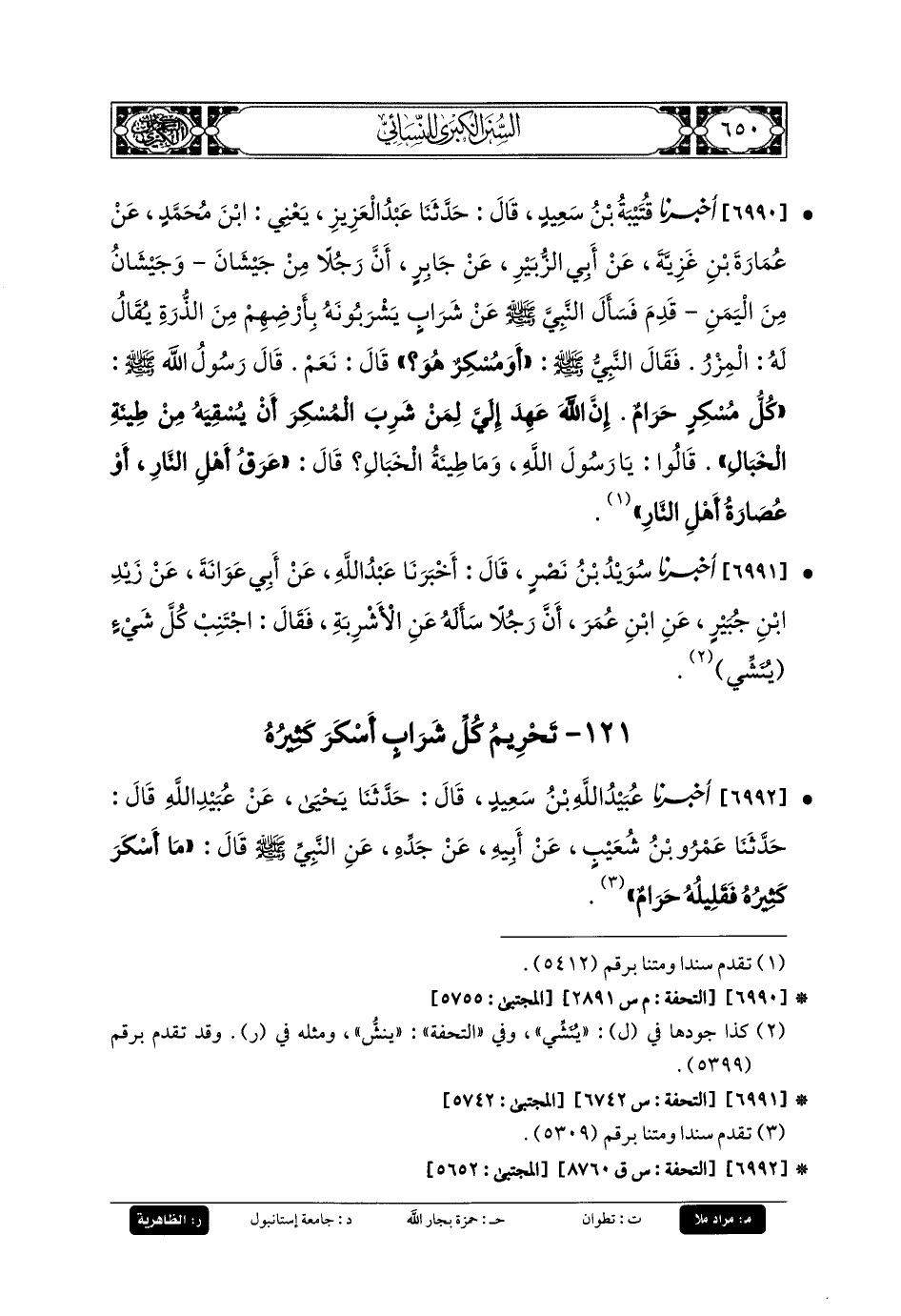 121- تَحْرِيمُ كُلِّ شَرَابٍ أَسْكَرَ كَثِيرُهُ.