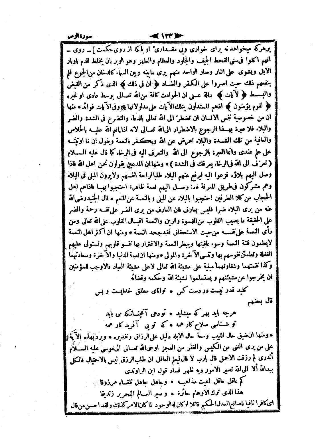ومنها ان ضيق حال اللبيب وسعة حال الأبله دليل على الرزاق وتقديره ويرد بهذه الآية على من يرى الغنى من الكيس والفقر من العجز اوحى الله تعالى الى موسى عليه السلام أتدري لم رزقت الأحمق قال يا رب لا قال ليعلم العاقل ان طلب الرزق ليس بالاحتيال فالكل بيد الله ألا الى الله تصير الأمور وبه ظهر فساد قول ابن الراوندي