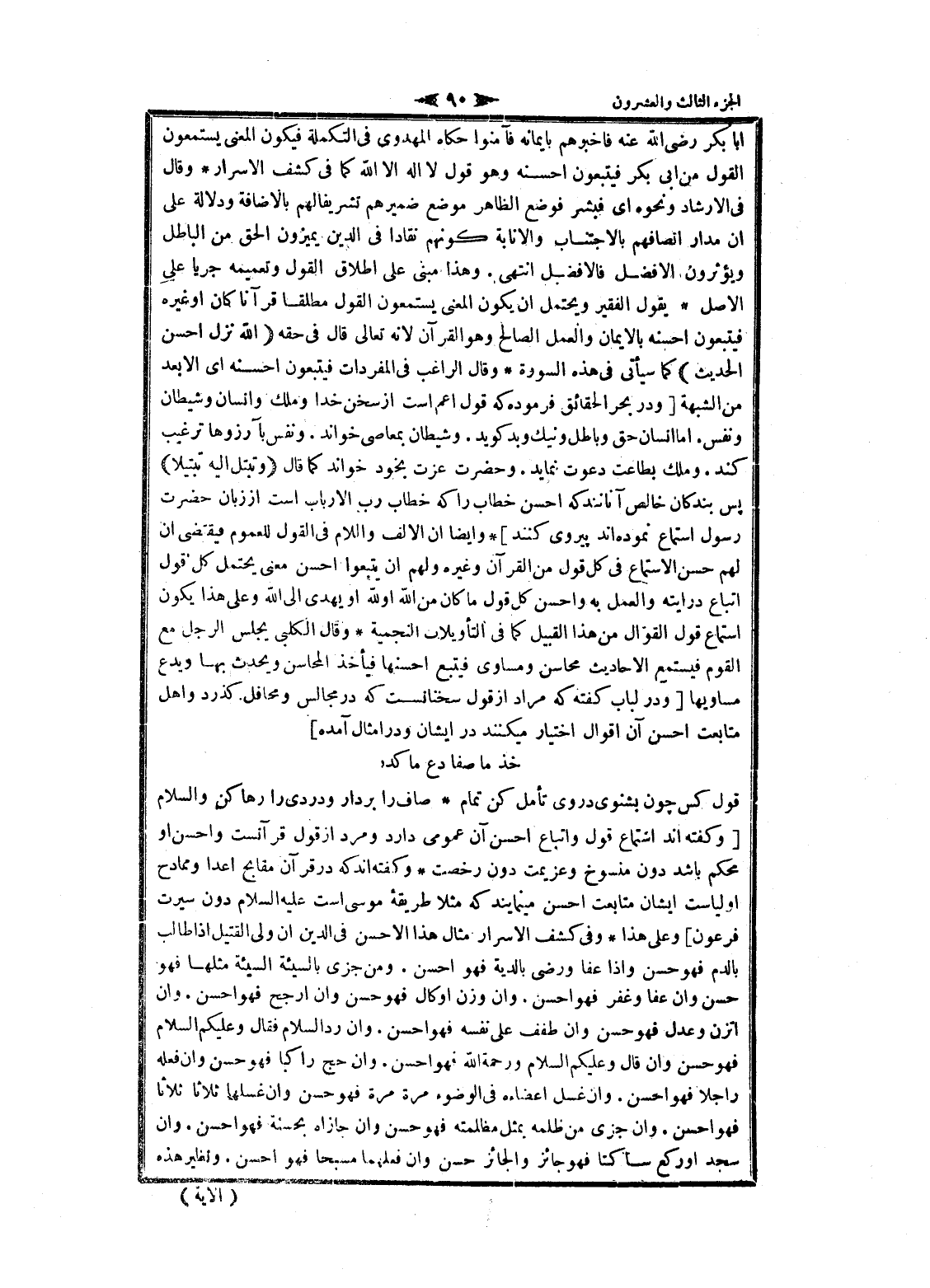 بندگان خالص آنانند كه احسن خطاب را كه خطاب رب الأرباب است از زبان حضرت رسول استماع نموده اند پيروى كنند] وايضا ان الالف واللام فى القول للعموم فيقتضى ان لهم حسن الاستماع فى كل قول من القرآن وغيره ولهم ان يتبعوا احسن معنى يحتمل كل قول اتباع درايته والعمل به واحسن كل قول ما كان من الله او لله او يهدى الى الله وعلى هذا يكون استماع قول القوّال من هذا القبيل كما فى التأويلات النجمية وقال الكلبي يجلس الرجل مع القوم فيستمع الأحاديث محاسن ومساوى فيتبع أحسنها فيأخذ المحاسن ويحدث بها ويدع مساويها [ودر لباب كفته كه مراد از قول سخنانست كه در مجالس ومحافل كذرد واهل متابعت احسن آن اقوال اختيار ميكنند در ايشان ودر أمثال آمده] خذ ما صفا دع ما كدر