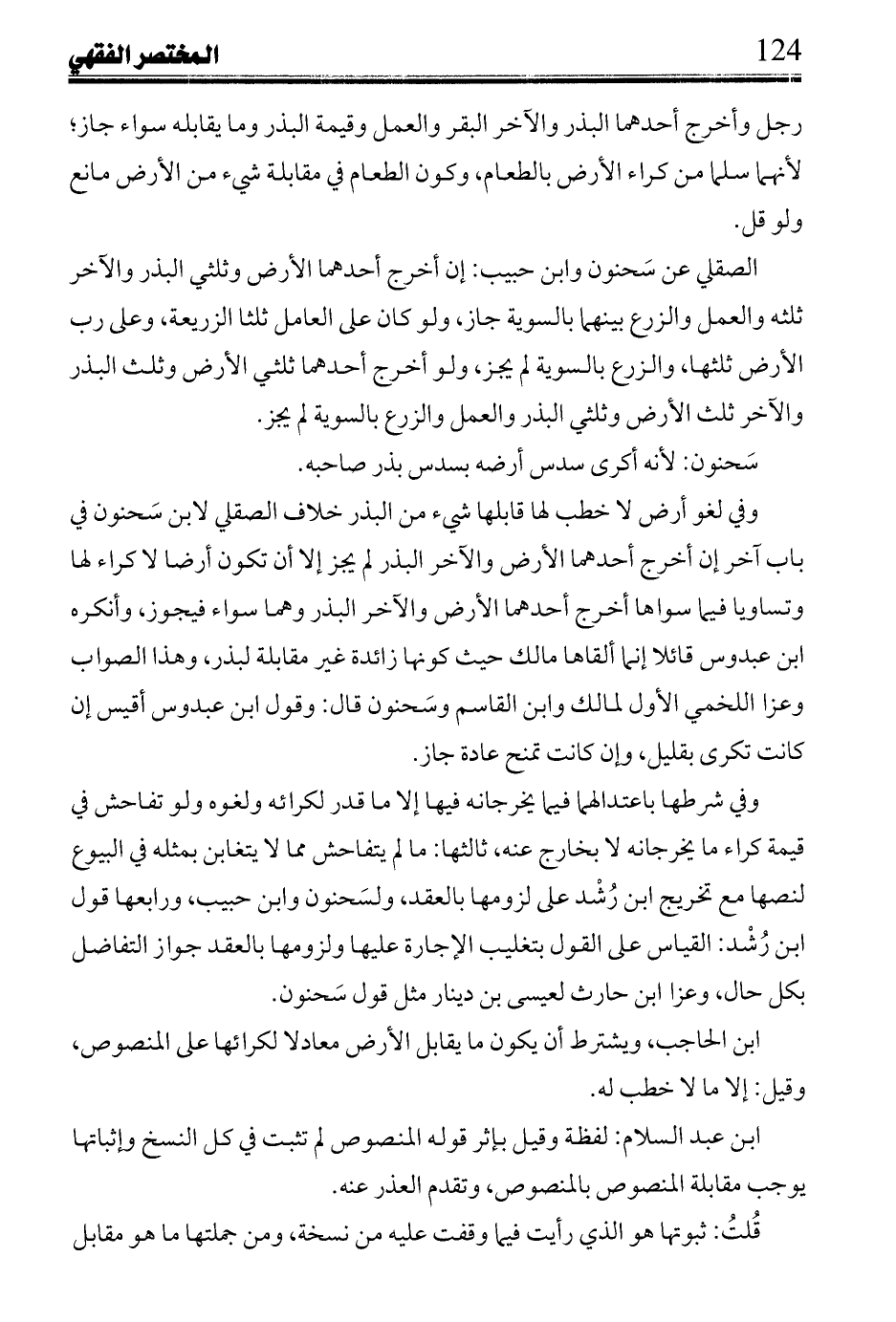 وفي شرطها باعتدالهما فيما يخرجانه فيها إلا ما قدر لكرائه ولغوه ولو تفاحش في قيمة كراء ما يخرجانه لا بخارج عنه، ثالثها: ما لم يتفاحش مما لا يتغابن بمثله في البيوع لنصها مع تخريج ابن رُشْد على لزومها بالعقد، ولسَحنون وابن حبيب، ورابعها: قول ابن رُشْد: القياس على القول بتغليب الإجارة عليها ولزومها بالعقد جواز التفاض بكل حال، وعزا ابن حارث لعيسى بن دينار مثل قول سَحنون.