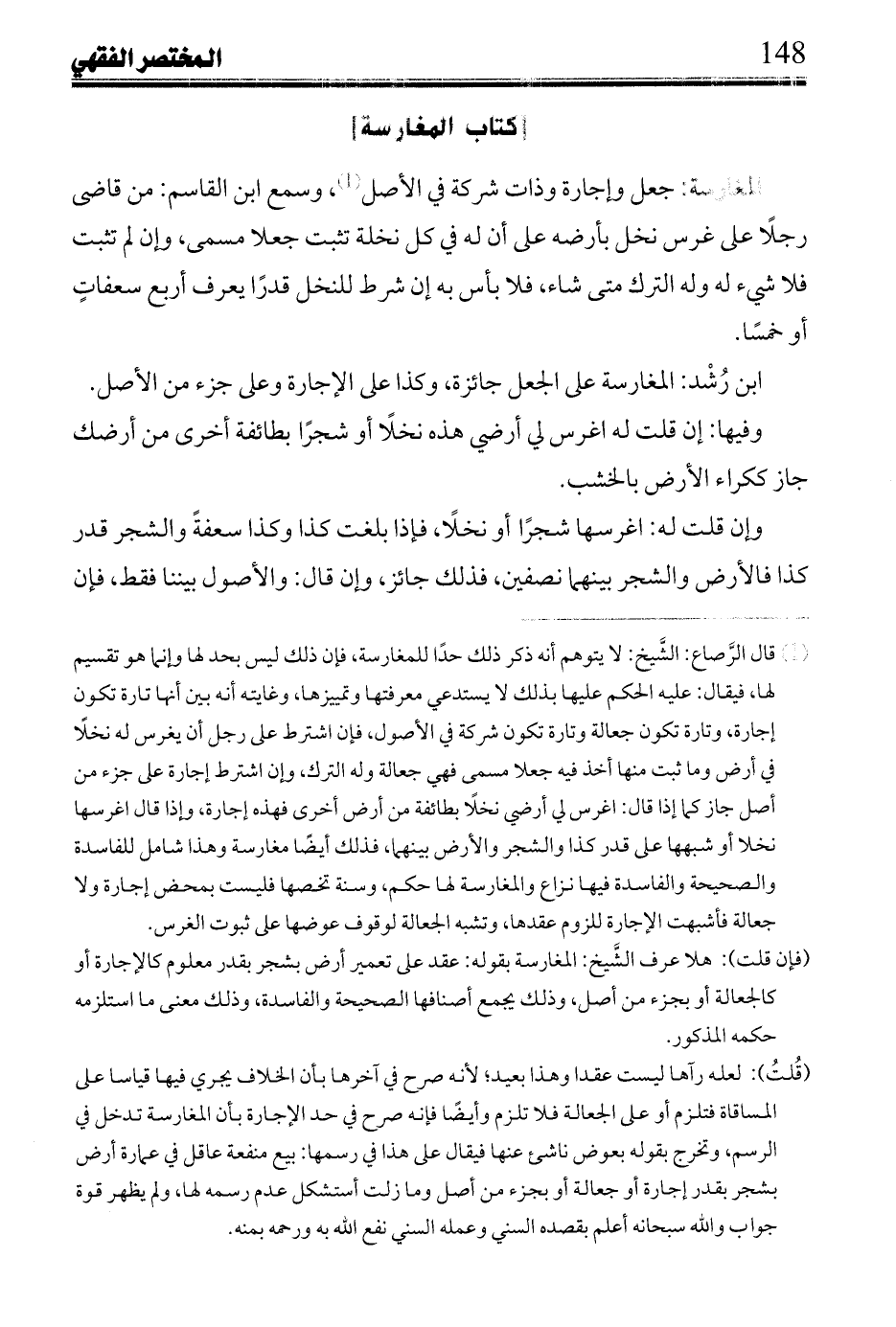ابن رشد: المغارسة على الجعل جائزة، وكذا على الإجارة وعلى جزء من الأصل.