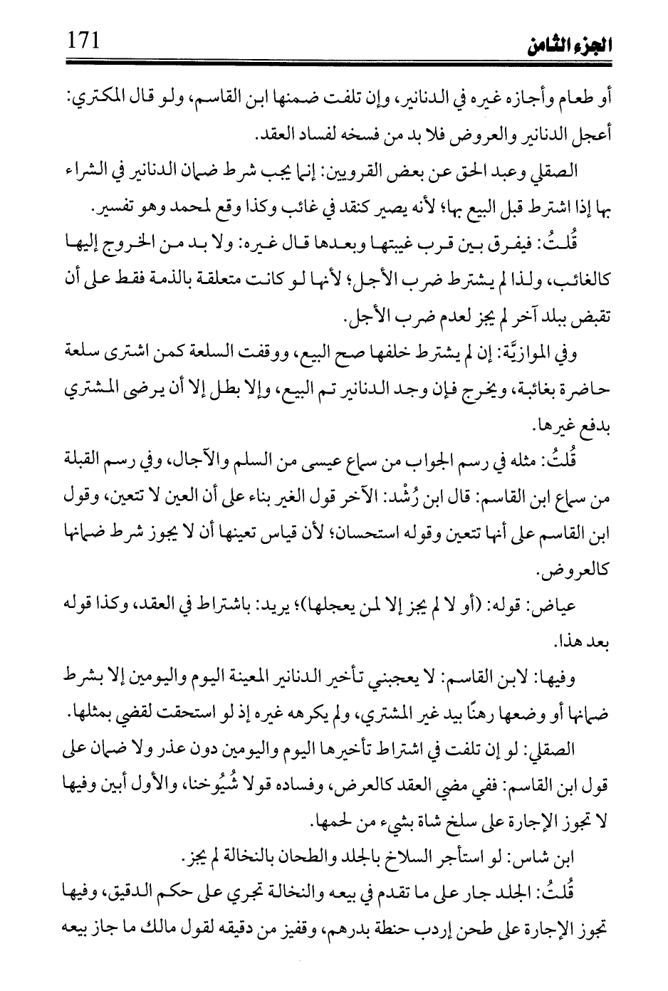 سمع ابن القاسم: لا خير في شراء ثوب من حائك نسج جله، ونقد ثمنه علي أنه يتم نسجه؛ لأن الثوب يختلف لو اختلف وجه نسجه.