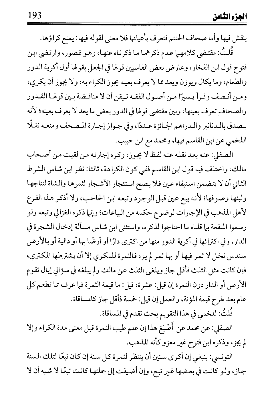 قلت: ما ذكره عن ابن القاسم -إلى قوله-: كان بيعًا وسلفًا هو سماعه عيسى ابن رشد: تحصيلها إن كانت الإقالة والثمرة طابت فتركها لرب الدار جائز بكل حال، وإن أبقاها لنفسه جاز إن كان تبعًا للأشهر التي سكن ككونها السدس من كراء السنة، وإن لم تطب لم يجز إبقاؤها لنفسه بحال، وتركها لرب الدار جائز إن كان تبعًا لما بقي، وإن لم تكن تبعًا له ولك يزد في رواية أبي زيد شيئا، وفيها: لا بأس بإجارة الظئر بكذا، ومع شرطها عليهم طعامها وكسوتها.