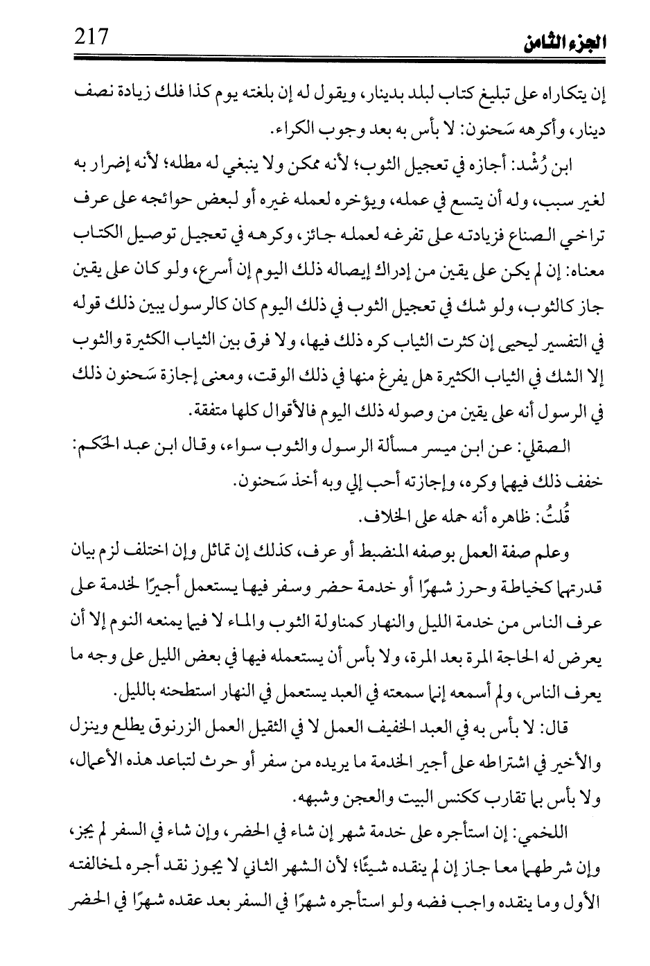 قُلتُ: ظاهر منعه في المتباعدين ولو لم ينقد، وقول محمد قبله: الصقلي: وفيه نظر؛ لأن ظاهر قوله: أولا لا يشترط سفر أيام يسميها يقتضي منعه في المختلفين، ولو عين وقتيهما خلاف قوله بعده يجوز في شهر بعينه إلا أن يجعل قوله: يسميها؛ أي: عددها لا أعيان أزمنتها، وقال ابن رشد: في رسم البيع والصرف لو استأجره شهرين يعمل في أولهما عملًا سماه وفي الآخر عملًا آخر بعيد\ًا من الأول، ففي جوازه قولا ابن القاسم وابن الماجشون، وهما قائمان من قولها من اكترى راحلة يركبها بعد شهر، وروى محمد: إن اشترط مكتري أرض بها غلمان إن احتاج إلى عملهم في أرض له أخرى استعملهم فلا ضير فيه، وشرط النقد فيما يتأخر الشروع فيه لتمام عمل مماثل له والعاقد واحد جائز لنقل الشيخ عن ابن حبيب: إن واجره تمام سنة كأن واجره على أقلها ونقد أجرته جاز في مثل العمل الأول، ولا يجوز لغيره، وسمع عيسى ابن القاسم لمن استأجر أجيرًا لعمل من الأعمال أن يرسله يعمل للناس، ويأتيه بما عمل أو يكريه في مثله ابن رشد؛ لأنه استأجره في عمل غير معين فمن حقه أن يواجره ممن شاء، ولا يلزم الأجير أن يواجر نفسه له ويأتيه بالأجرة، ولو رضي بذلك جاز ونقله بخلاف عمله.