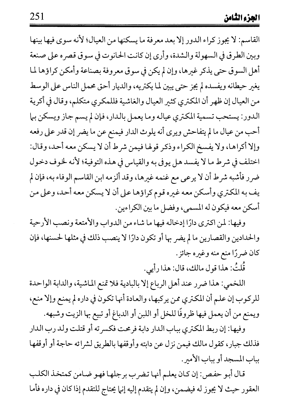قال: والمضمونة يذكر جنسها ونوعها والذكورية والأنوثة، وتبعه ابن شاس وابن الحاجب واقتصرا عليه، وكذا المتيطي إلا أنه قال: قبل نقله يصف ذلك بأبلغ صفاته فيدخل فيه وجوب ذكر سن الدابة، وفي المعونة لا يحتاج لتعيين الراكب لتقارب الناس عادة ولا لوصفه وتبعه ابن شاس وابن الحاجب وقبله ابن عبد السلام، وظاهر عدم لزوم ذكر كونه رجلاً أو امرأة والأظهر لزوم تعيين أحدهما؛ لأن ركوب النساء أشق وهو ظاهر قولها من اكترى على حمل رجلين أو امرأتين لم يرهما جاز لتساوي الأجسام إلا الخاص، فإن أتاه برجلين فادحين أو امرأتين فادحتين لم يلزمه ابن شاس ويصف المحل بالسعة أو الضيق.