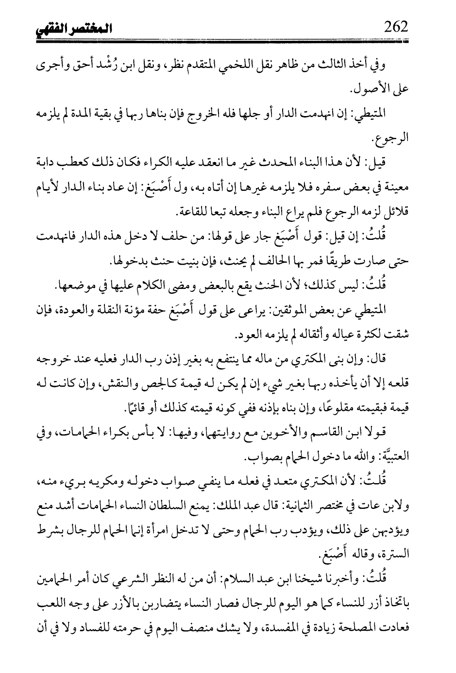 زاد المتيطى عن فضل: أن أبا زيد علد الرحمن ابن إبراهيم صاحب الثمانية كان يكرى أكريته بقرطبة على الوجه الذى ذكر ابن حبيب: أنه لا يجوز.