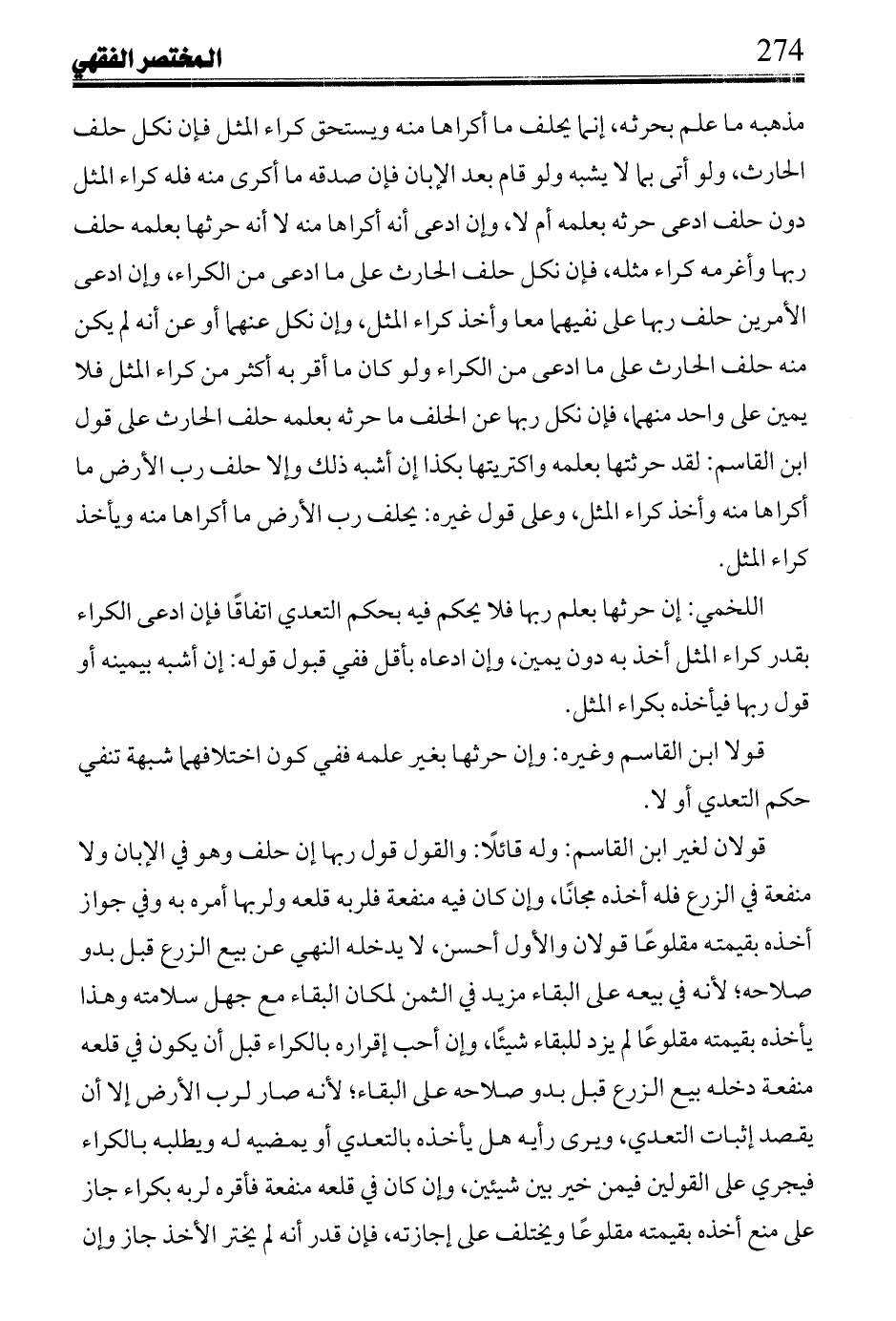 التونسى: إن علل قول الغير بأن تمكن المكرى من أخذ الشجر بقيمته عاجلا مع ثبوته له عند انقضاء مدة الكراء الثانى منضما لتمكن المكترى الأول من اخذه بقيمته يوجب تهمة رب الأرض على أنه إنما أكراها منه ليسلفه قيمة الشجر على أن يدفعها لربها حتى ينقضى أمد كراء الثانى لزم مثله فى إكرائها ممن له الشجر بها والسلف هنا تأخير اقتضاء قيمتها، فإن قيل: إنما أخذ الشجر بقيمتها لرب الأرض لا للمكترى منه فائدة جهل المكترى قدر الأرض إن أخذ ربها الشجر كان المكترى منها ما سوى محل الشجر، وإن لم يأخذها كان بيعها قبل لو كانت العلة هذه كان المنع متفقا عليه، فإن قيل رب الأرض: أسقط حقه فى الشجر فلا قول لمكترى الأةل فى أخذه قيل: لا ضرر على الغارس فى ذلك، والمكترى حل محل رب الأرض، وهو نص ابن القاسم