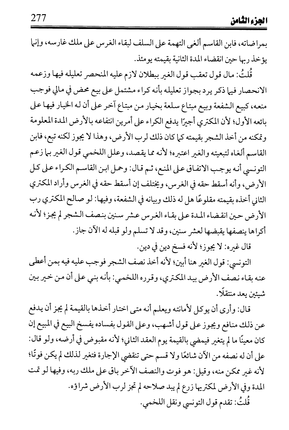 قلت: هذا هو الأظهر لا الأول وتشبه مسألة العريش.