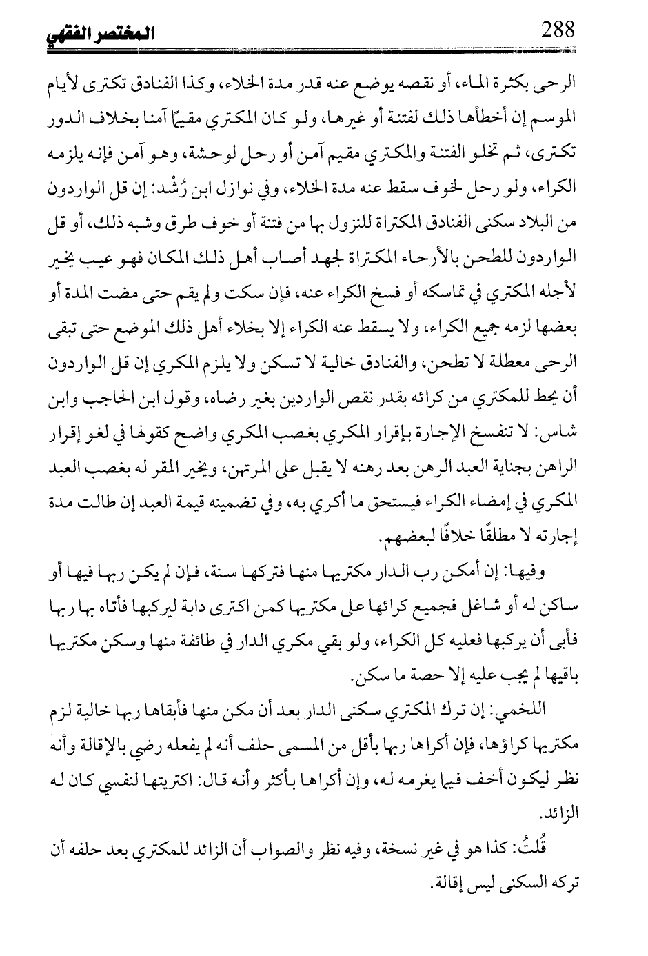 وقيمة نقص لبسه درهم نقص من الخمسة وبقيت أربعة دراهم، ثم يقال يمكن أن يكريه ربه لو رجع إليه بهذا أو لا يجد كراءه فيعطي من الأربعة ما يقوم به على الاجتهاد فيما يقوم به على الاجتهاد فيما يقوم به على الغرر مما يمكن أن يكريه أو لا يجد كما ينظر في صداق المثل إلى حال الرجل والمرأة وكذا في الدابة يقال: ما ينقصها الركوب وإن كان لا ينقصها قيل: ما يمكن أن يزيد فيها الوقوف والراحة، وكذا الأرض ينظر على ما ينتفع به ربها إن بقيت بورا والدار لا يتصور فيها مثل هذا.
