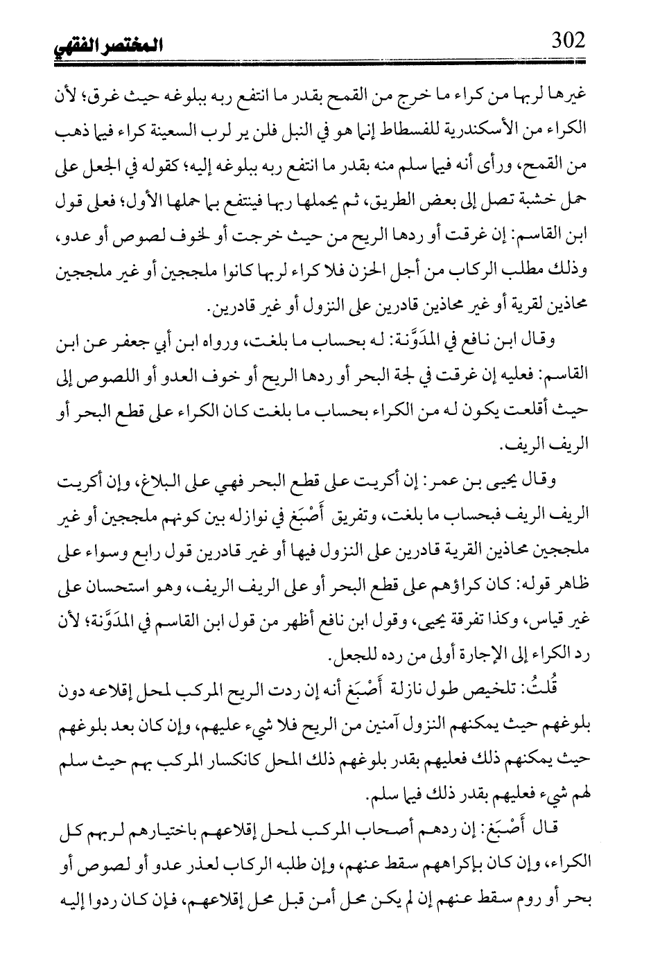 كقول أشهب في نوازل أَصْبَغ في الكرى: فيخطيء فيحمل غير الحمل الذي اكتري عليه، وقوله في كرائه عليه من حيث لا يخشى هلاكه، ولا سلطان فيه: بوجوب الكراء على رب المتاع بين كقولها مع غيرها فيمن التقط متاعا فحمله إلى موضع.