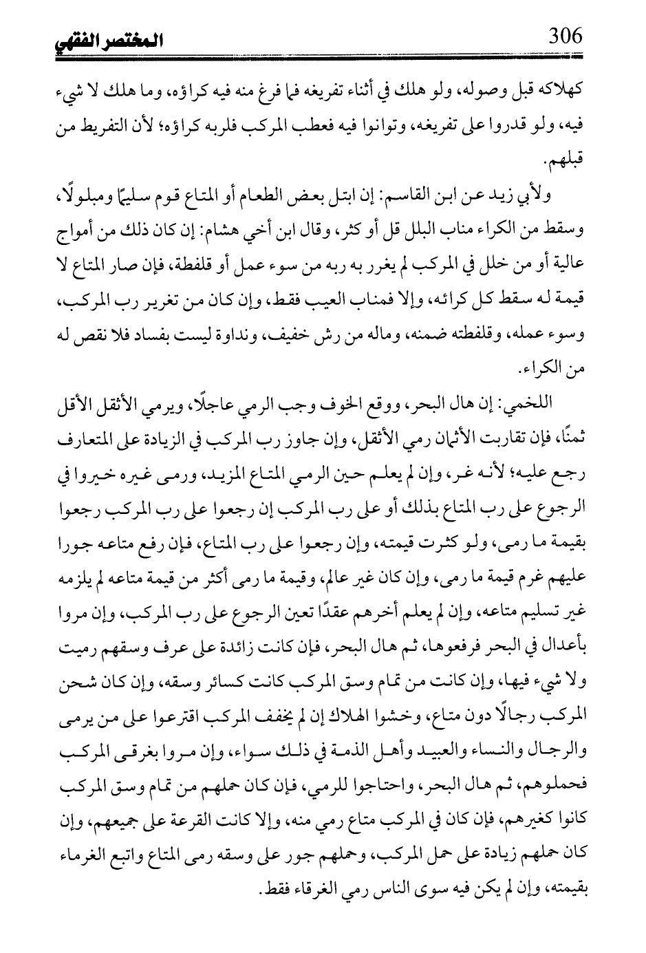 قُلتُ: لم يتكلم عليه ابن رُشْد شيئاً، وتكررت في رسم أخذ يشرب خمراً قال فيه: ليس في جرم السفينة شيء لو كان جرمة فارغاً نجا إنما كان طرحهم لنجاة أمتعتهم.