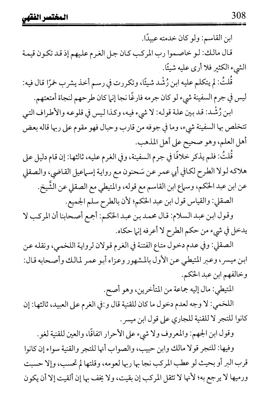الصقلى عن الشيخ: من طرح بعض ماله سقط عدل ما سلم له من مال من بقى كل ماله فى الشركة، وشرك من طرح بعض ماله من لم يطرح له شاء فى عدل ما طرح له من مال من لم يطرح له شاء.