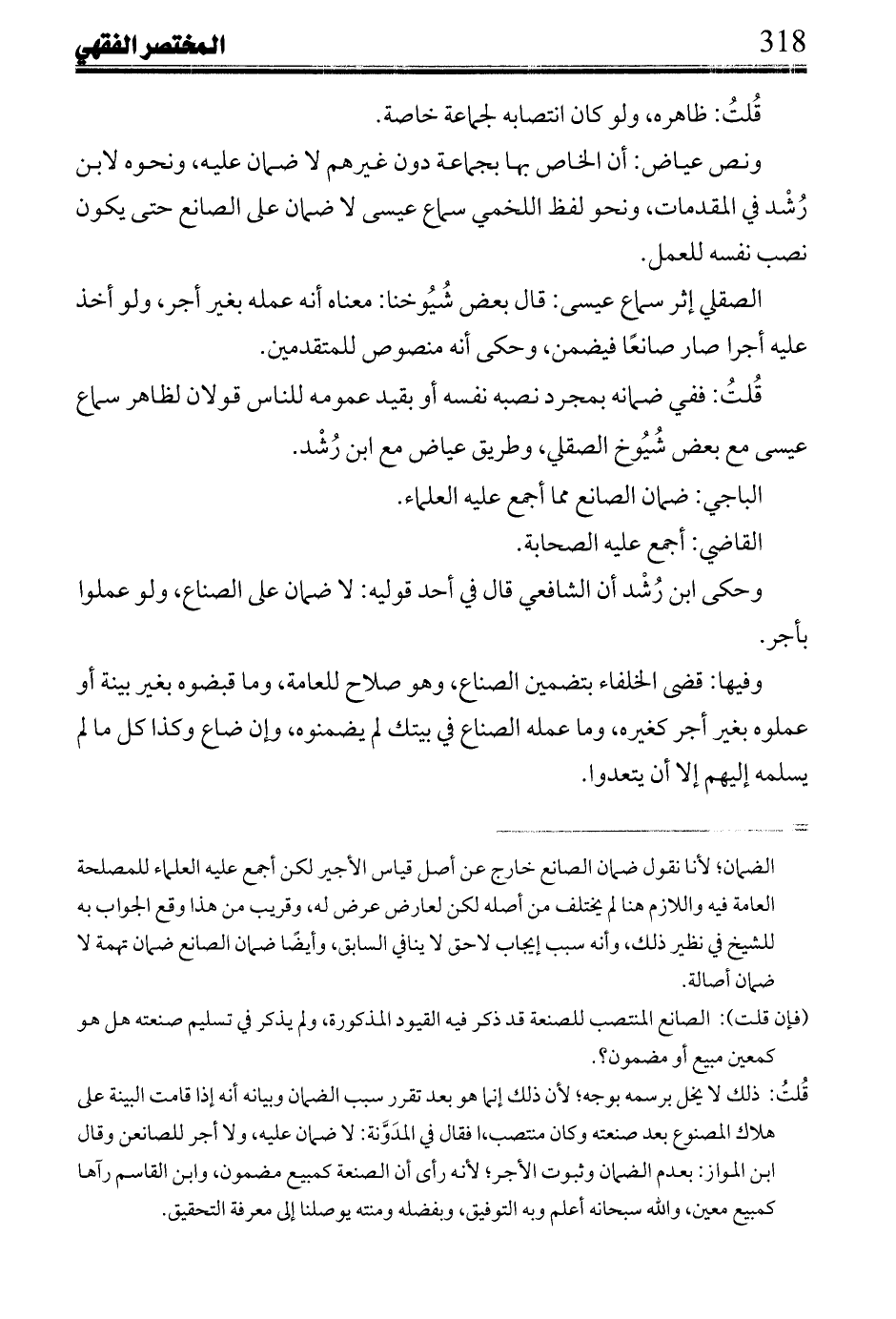 قال ابن الحبيب: والدابة يصر عها البيطار، والسيف يقومه الصيقل؛ فيكسر ذلك والطبيب يكوى العليل فيموت والخاتن يختن الصبى فيموت من ختانه، والحجام يقلع الضرس فيموت صاحبه أنه لا يضمن أحد من هؤلاء؛ لأن الغالب فى هذه الغرر، فإذا أذن فيه صاحبه وعمل فيه المعتاد لم يضمنه الصانع، وإنما يضمن بالتعدى أو بتلف بغير بينة، فإن قلت: لو كان لهذا ما شرط حضور ربه.