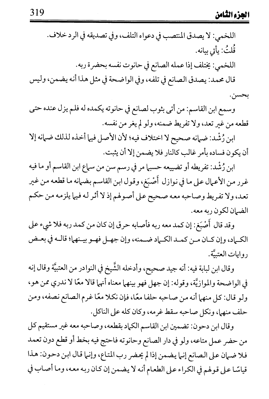 وفى المقدمات: قيمته يوم قبض إلا أن يقر أن قيمته بمدة غرم قيمته يوم ظهر عنده، وإن كانت قيمته يومئذ أقل منها يوم قبض، وكذا الرهن والعارية، وفى موضع من سماع عيسى من الرهن: يضمن قيمته يوم ضاع وتأويله عندى أنه ظهر عنده فى الوقت الذى ادعى تلفه فيه؛ لأن قيمته يوم ضاع قد تكون أقل منها يوم الرهن، فإن لم يظهر عنده من حين رهنه لم يصدق فى وقت تلفه كما لا يصد فى تلفه.