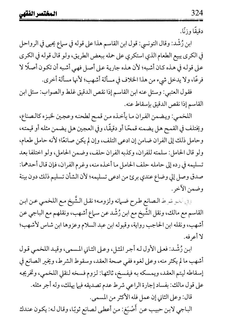 ابن رشد: إن كان فيه عمل مثله فى ضمانه، وإلا فإن احتيج إلى دفعه فعلى طرح ضمانه سواء احتيج إليه فى العمل أو احتاج إليه المعمول، ولزومه فيها، ثالثها: الأول فيها احتاج إليه المعمول، والثانى فيما احتاج إليه فى عمله لسحنون لنصه فى المثال، والأم التى ينسخ منها الوراق، وتخريج الأعدال فى الطحان، والقصاع فى الفران على قوله فى الأولين.