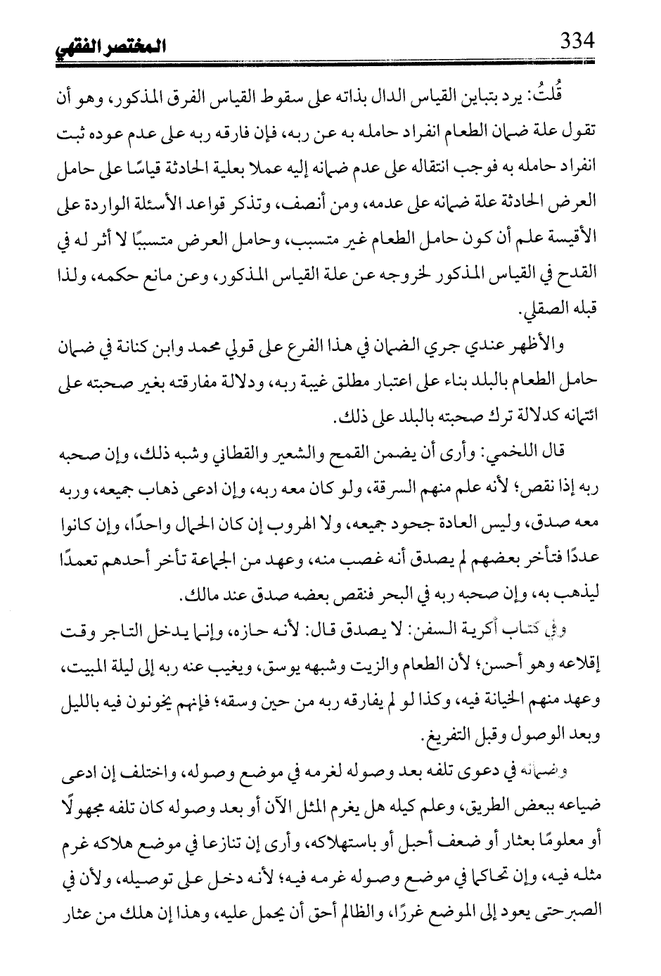 ابن عبد السلام: ظاهره أن الحمامى هو مكترى الحمار لا حارس الثياب، فإن كان هذا مراده فالمشهور عدم تضمينه مطلقا إلا أن يفرط، وليس القول بتضمينه مطلقا بموجود فى المذهب، وخلاف فى عدم تضمينه إلا أن يفرط.