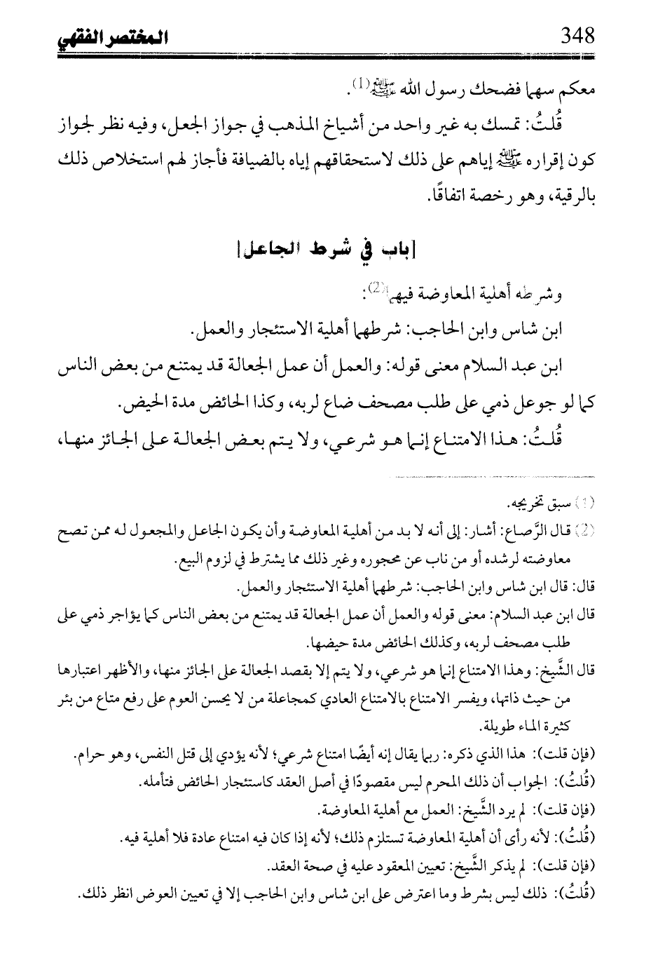 وتعقب ابن عبد السلام: كون النفقة على المجعول له بأن النفقة حينئذ جزء من العوض، وذلك بيع مقترن بالجعل إلا أن يقال إنه من ضروريات هذا العقد، ولا انفكاك عنه إلا بجعله سلفًا من المجعول له يؤديه على الجاعل صار سلفًا وجعلًا، وهو أشد فسادًا من بيع وجعل.