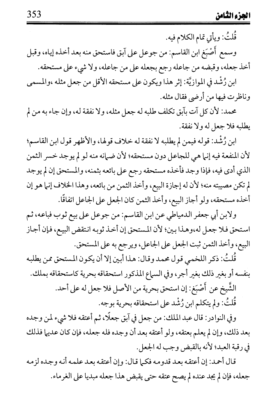 ابن رشد: لأن شرط الجعل أن يكون معلومًا.