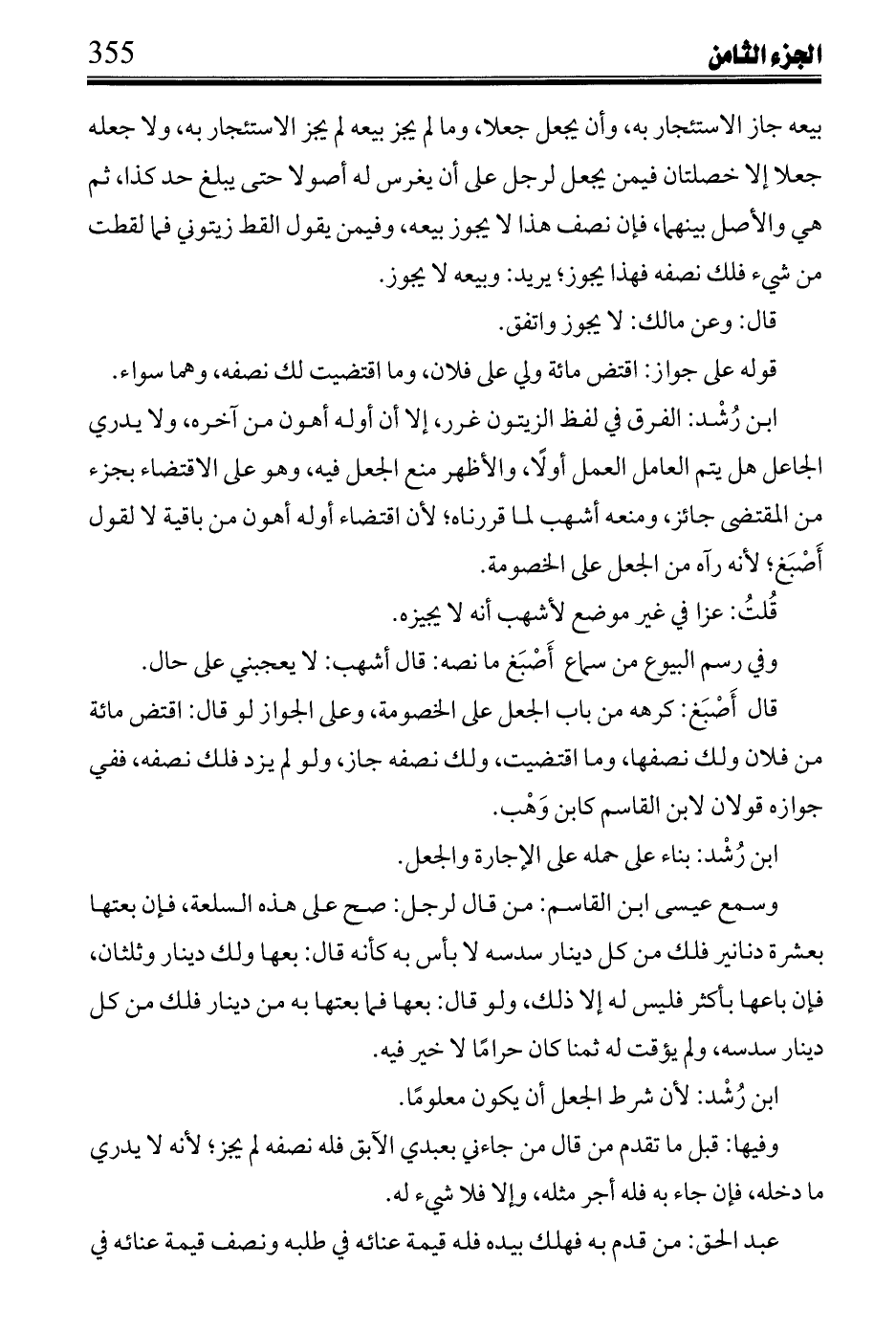 ابن رشد: وإن كان على أن له فيما أتى به منهما من الجعل بقدر قيمته من قيمة صاحبه ففي فساده وجوازه.