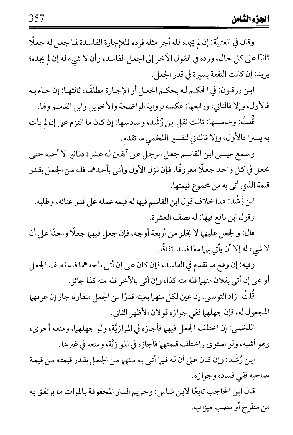 وسمع ابن القاسم: في كتاب ابن القاسم: ليس لمن له دار في رحبة لأهل الطريق ارتفاق بها حين ضيق الطريق بالأحمال، وشبهها أن يجعل عليها بابًا حتى تكون الرحبة له فناء، ولم يزد فيها ابن رشد، ونزلت عندنا بتونس في موضعين؛ فحكم بالهدم الباب وإزالته.
