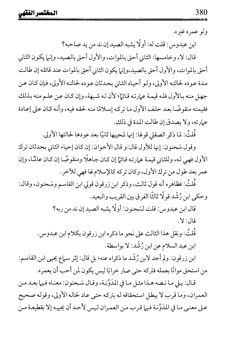 قُلتُ: هذا الذي نقله من كلام سَحنون إلى آخره، إنما هو في القسم الأول من مسمى القريب حيث قسمه ابن رُشْد: في أول نسألة من رسم الدور، وهو خلاف في صحة الإحياء بإذن الإمام، واختلفت فيه دونه، وفي ساقه الصقلي.