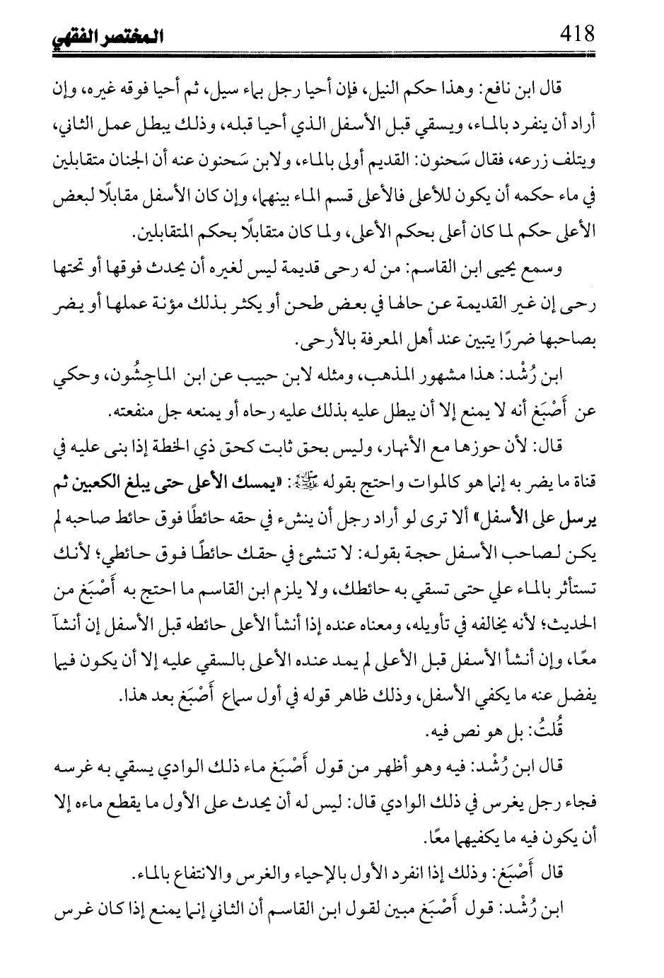 قال سَحنون: يقتسمونه على قدر ملكهم بالقلد لايقدم أحد على أحد يصنع كل منهم بمائه ماشاء.