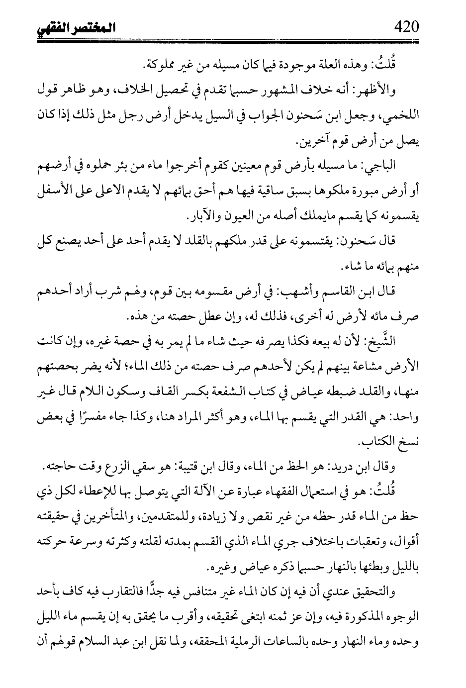 ابن حبيب: قال جميع أصحابنا ورووا: حافرها او ورثته أحق بحاجتهم من مائها.